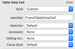 이 Reuse identifier에 'FriendTableViewCell'라고 작성해 줍니다.