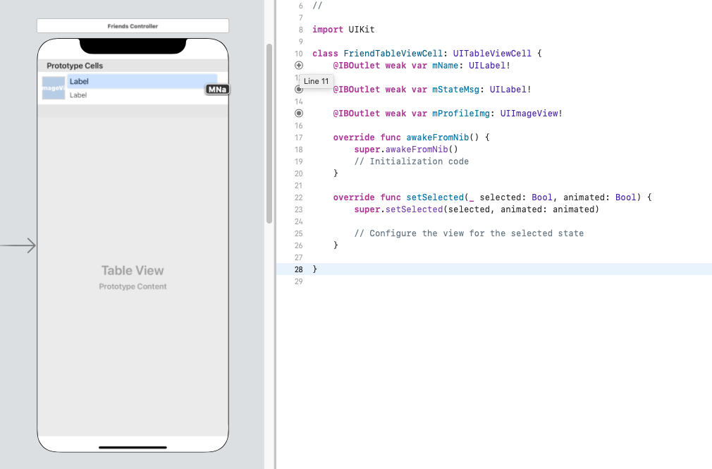 저는 사진, 이름, 상태 메시지를 나타낼 수 있는 Row를 만들기 위해 UIImageview, Lable을 추가했습니다.