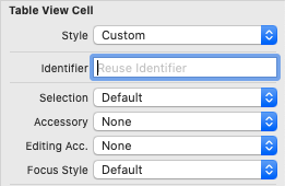 마지막으로 TableViewCell을 선택 후 Attuributes inspector -> identifier을 확인하면 Reuse identifier라고 적혀있는 것을 확인할 수 있습니다.