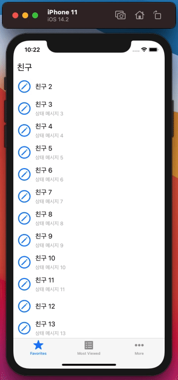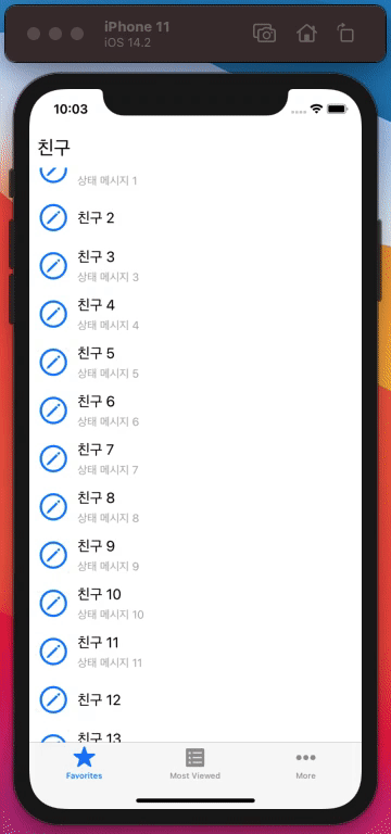 UISwipeActions에 대한 값을 UISwipeActionsConfiguration에 배열 형태로 넣어준 후 실행해보면 아래와 같이 동작하는 것을 확인할 수 있습니다.