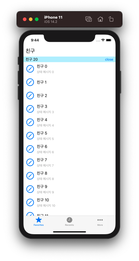 저는 테이블 뷰에 섹션으로 사용하기 위해서 섹션 타이틀과 버튼을 추가했습니다.