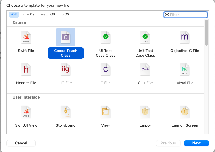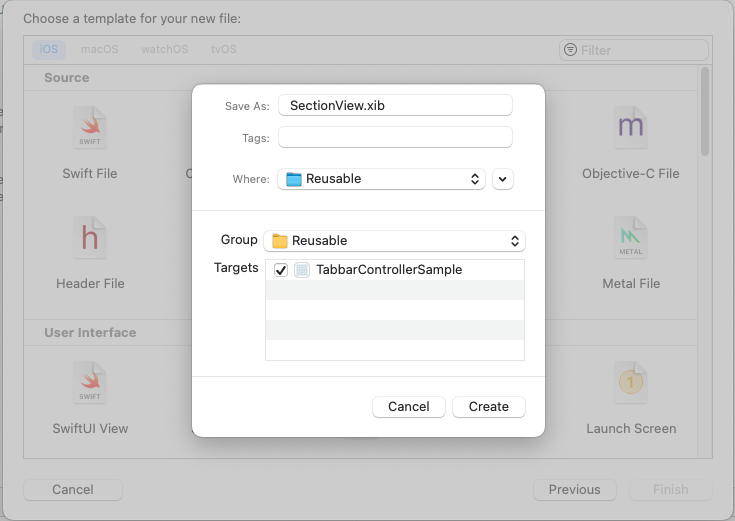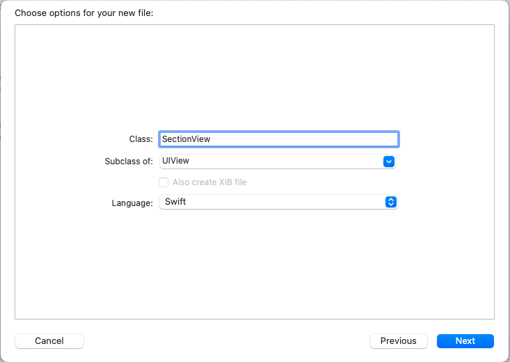 그런데 UITableViewCell을 만들 때와 다르게 Xib File을 생성할 수 없어서 Xib 파일 또한 생성해 줘야 합니다.