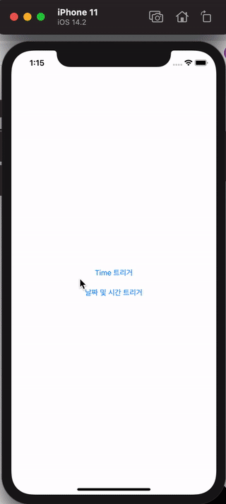 UNTimeIntervalNotificationTrigger: 지정된 시간이 경과되면 발생