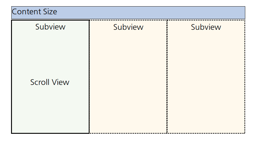 ScrollView는 화면 구성 Scroll View 작동 방법은 위 이미지와 같고 해당 함수의 설정은 아래와 같습니다.