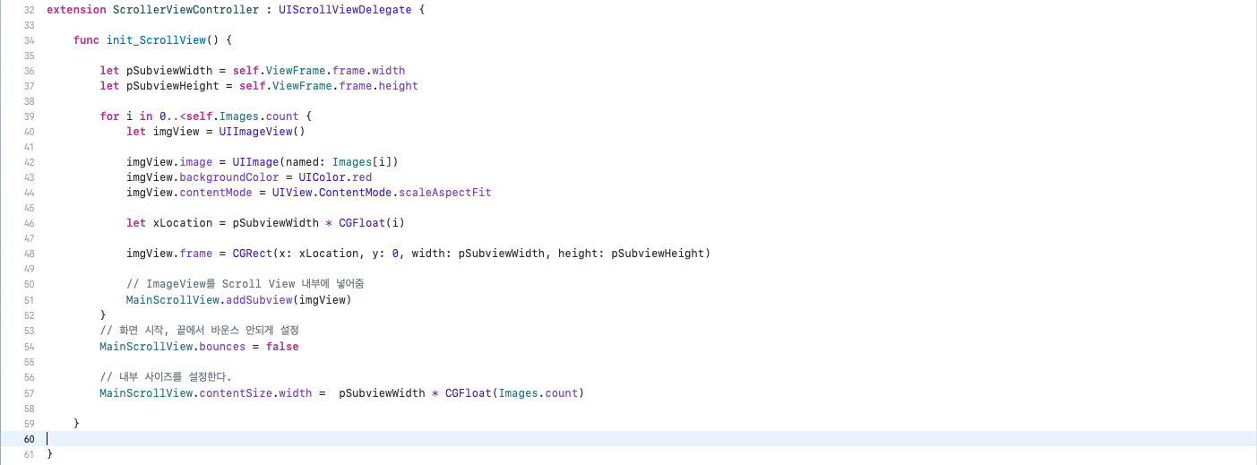 36, 37 : ScrollView에 넣을 Subview의 크기 변수