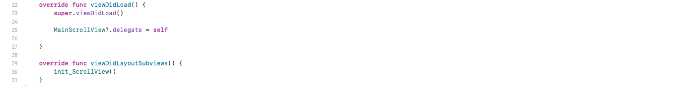마지막으로 MainScrollView의 Delegate를 연결하고 작성한 함수를 호출합니다.