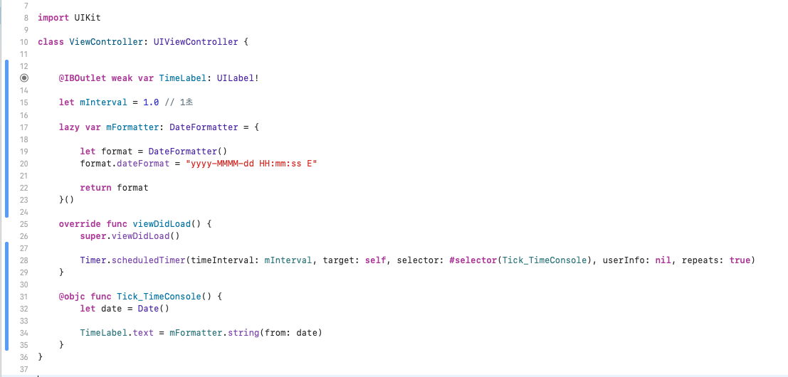 Timer가 정상적으로 작동하는지 확인하기 위해 DateFormatter를 선언 후 Label Text로 확인할 수 있게 했습니다.